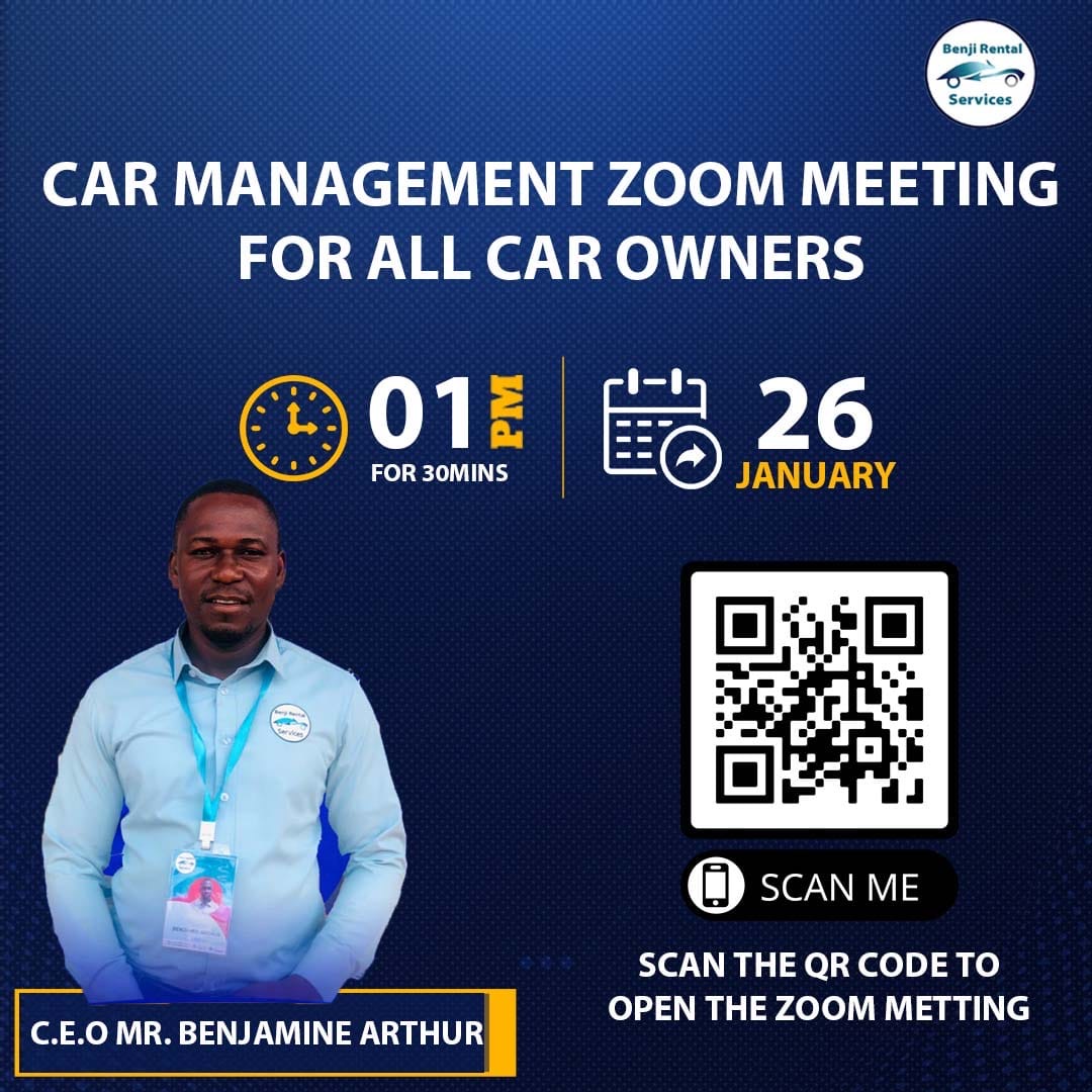 We are conducting a zoom meeting for all car owners who would like to partner with Benji Rental Services in terms of car management. All detailed information will be discussed on our online zoom meeting. Kindly scan the code on the image as seen to join the link automatically. For those who won't be available at that stated time can contact us through our email or can give us a phone call and we'll be right at your service.